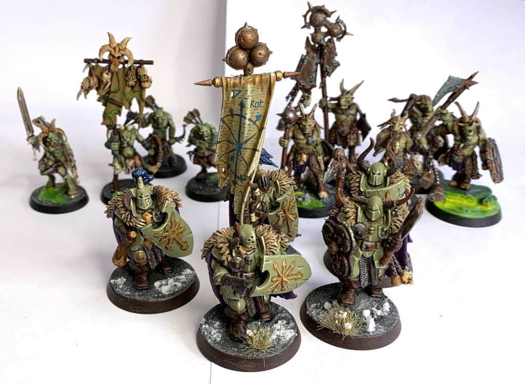 Rounding off the Nurgle portion are some Chaos Warriors, Ungor Raiders (ranged combat finally), and a few Gors all painted in a nice sickly green.