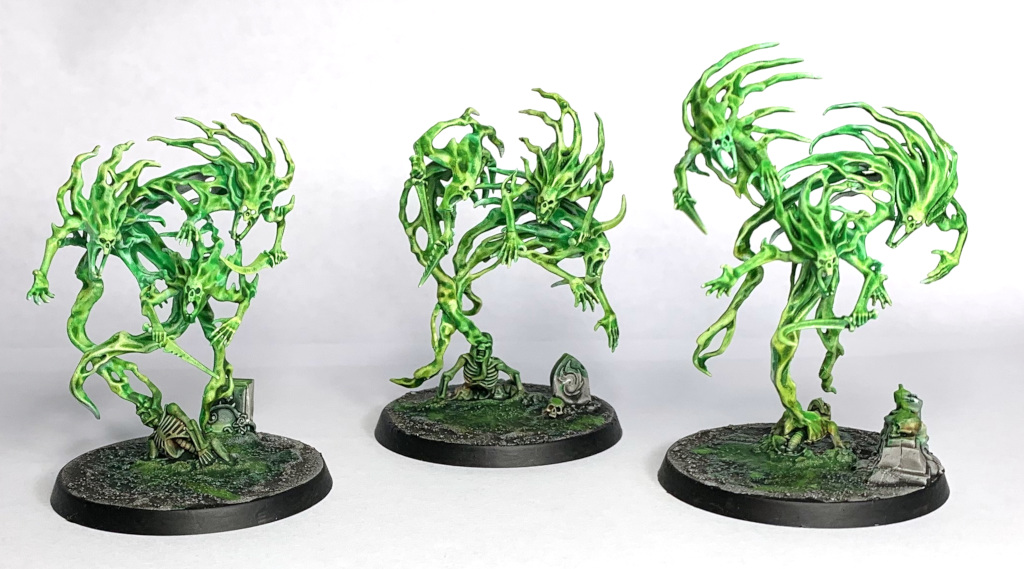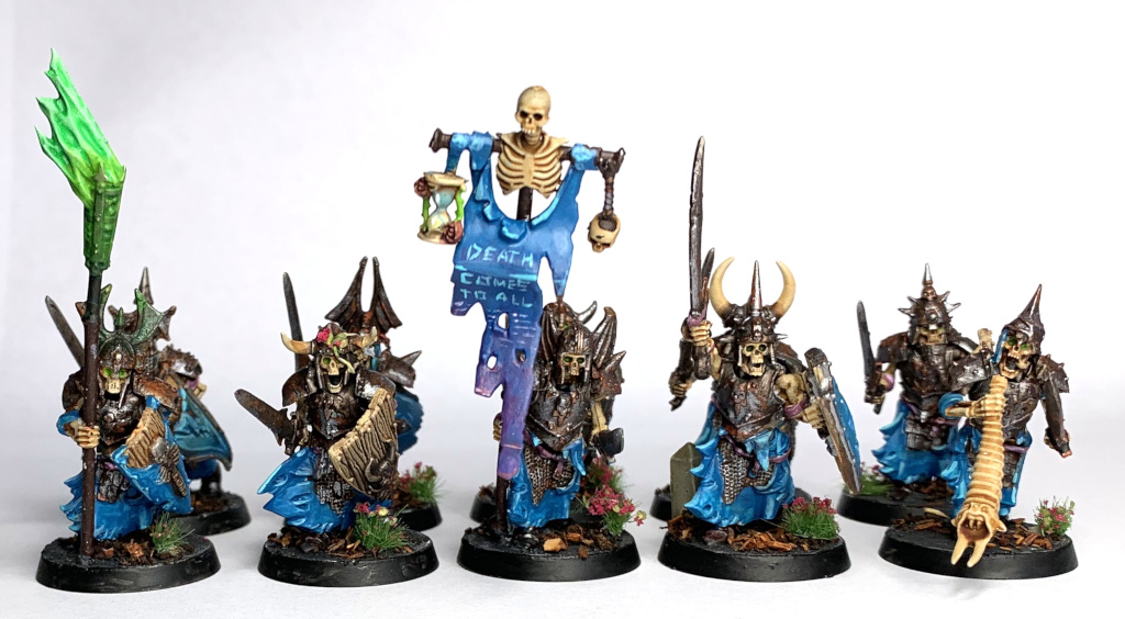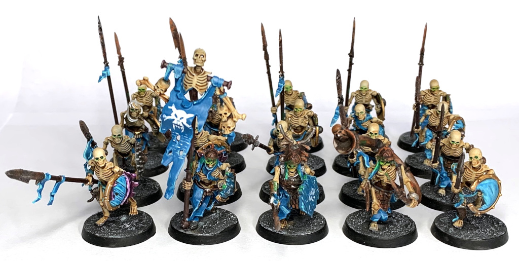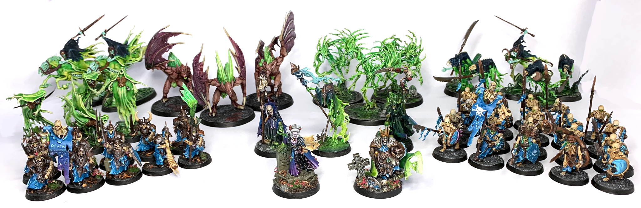 To reiterate the guys were painted for fun, are probably not entirely game legal (though I think as Grand Host of Nagash and Nighthaunt allies, it is legal) and were painted over about 6 weeks or so (Dec 2018 - Jan 2019)