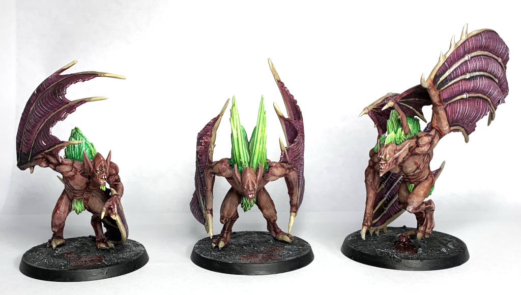 I managed to grab the Start Collecting: Flesh Eater Courts box for cheap, so the (as yet unpainted) Terrorgheist and the Vargheists were assembled to join the gang. Being mostly vampire I had to bring the green in another way on these guys and therefore opted to do their hair in the lovely green mixture used on the Nighthaunt.
