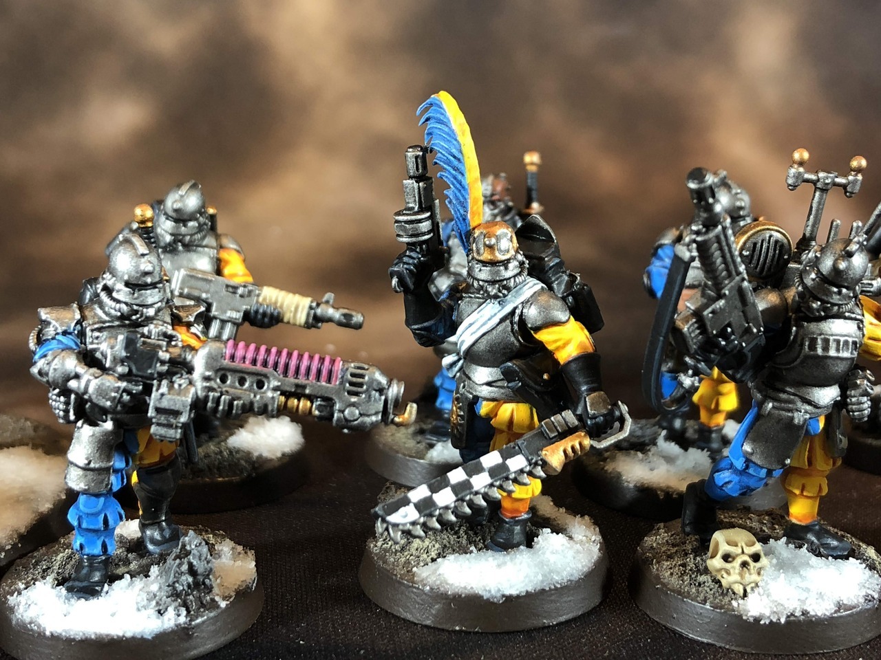 By now it was 8th edition and there was a little something called "The Loyal 32" being attached to Knights armies to supply them with much needed Command Points. Not content to use any of the existing Guard armies I have (don't judge, it's a sickness) I decided to convert and paint up a matching regiment of Guardsmen to go along with the Knights of House Lakar - The House Lakar Fusiliers. As long time