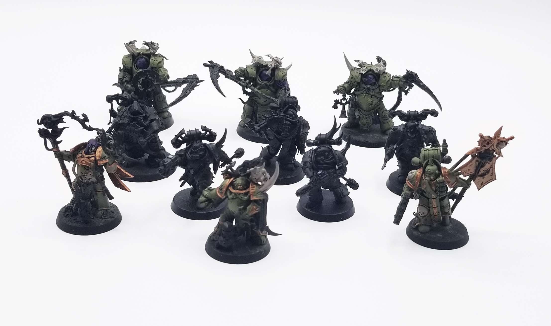I also spent some time adding some Blight Lords to the army, painting up a squad of 5 plus the special lads from the Lord Felthius' Tainted Cohort Box. I have another 5 of these bad boys to paint up from the Kill Team Elites boxed set still but currently I like what I've got and I need to kind of see where things are going with the new Codex before I commit to building another five but more than likely they'll get bubotic axes (i've got extra bits to swap out swords) and another flail. Maybe I'll do a reaper autocannon though, who knows!