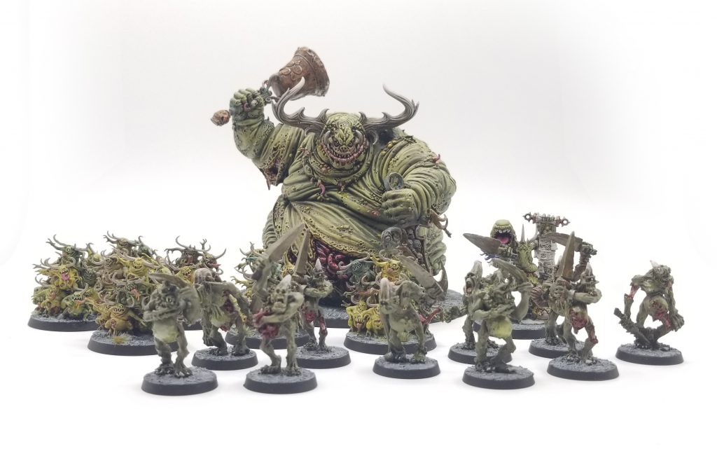 And finally, I spent a great deal of time adding some daemons to the mix as well to support my Death Guard. I knew even before 9th edition that I wanted to have a detachment of daemons so I could run a Great Unclean One with a plague bell to bring them back to life. Also I wanted some Nurglings to camp on objectives early on and be irritating. Then the transition to 9th happened and these became really viable strategies. Note that through about a dozen games, I have yet to return a Blight-Hauler to life with the GUO even once. Also I have to re-base all of those Plaguebearers, a thing that I really, really don't want to do.