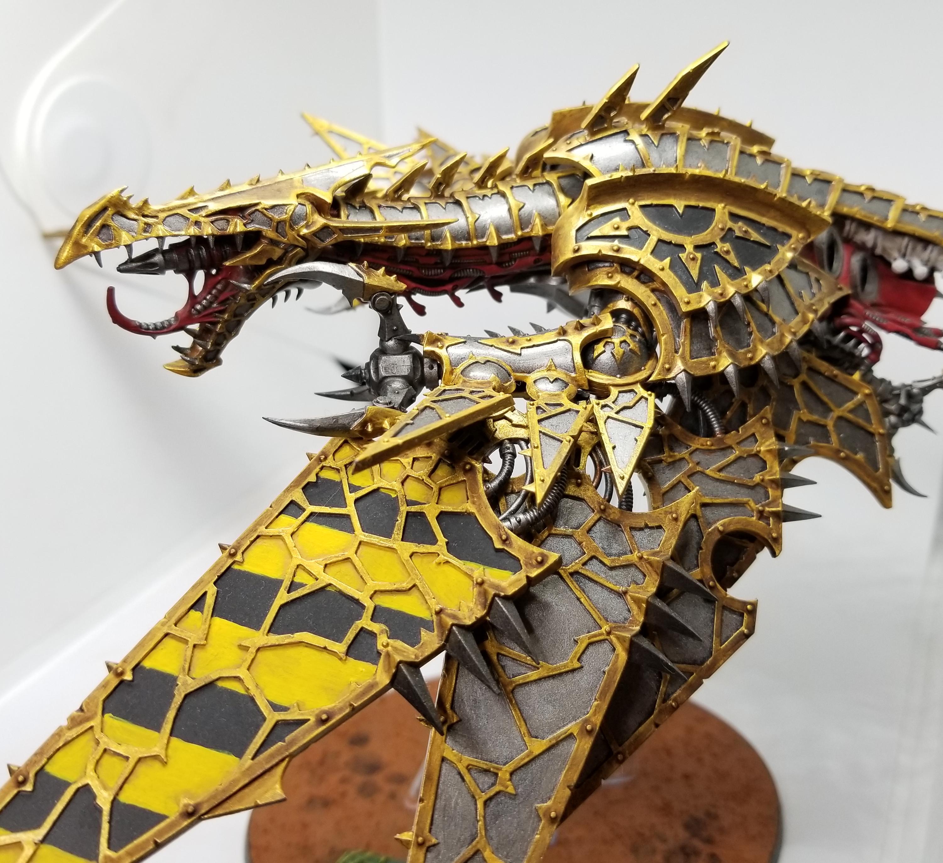 Ah, the Heldrake. I've painted four of these so far and let me tell you, it is not my favorite model to paint. The Iron Warriors one was probably the least tedious of the bunch because, despite the caution stripes on his wings (which I am