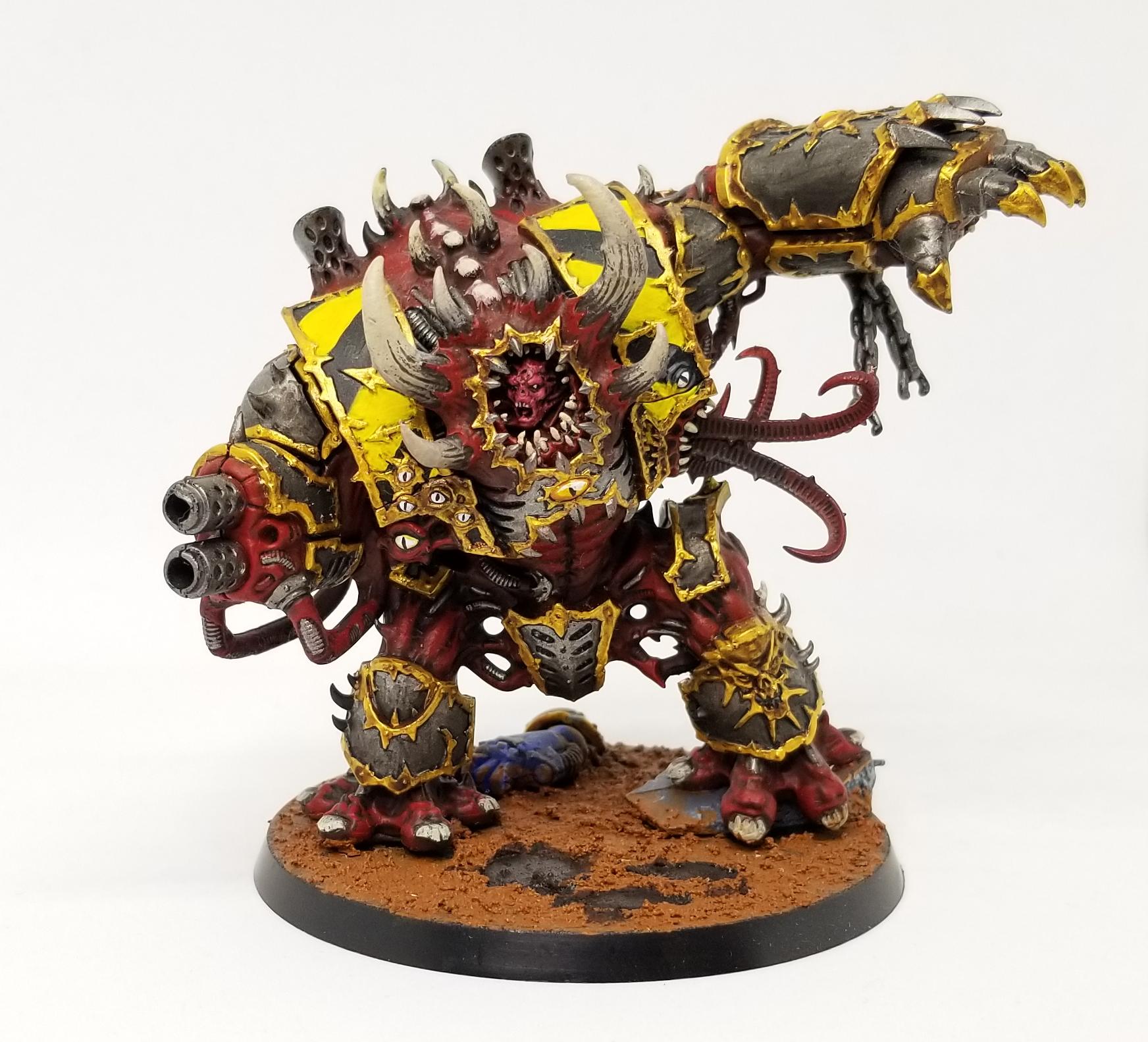The Helbrute is maybe my second favorite model in the army; he's one of the first models I painted from the 6th edition Dark Vengeance box set and while I wasn't really sold on his aesthetic initially, I was happy enough with how his model turned out that it turned me around on them. He's the model where I decided to do a deep red for the fleshy parts of my Iron Warriors daemon engines/Obliterators, and I like how it looks on him. As I write this there are a few areas I can see where he needs some slight touching up but overall I'm still pretty happy with this model.