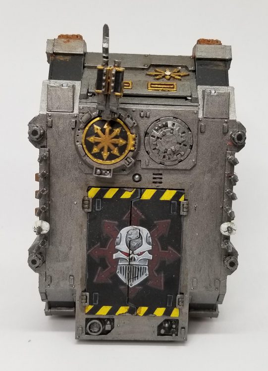 An Iron Warriors army wouldn't be complete without Vindicators. Or at least, it wouldn't have been in any edition prior to 8th, anyways. I have three in the army (which you can see in the full army shot), but only two fit in my lightbox, so you can see on those how I did the hazard stripe pattern to work with all three next to each other. I really like painting and working with the Vindicators, so it's a shame their rules aren't better. The recent update helps, but it still isn't quite enough and Linbreaker Bombardment stinks as a Stratagem. Anyways on a per-model basis, my Iron Warriors have more vehicles than any of my other Chaos armies, which seems fitting.