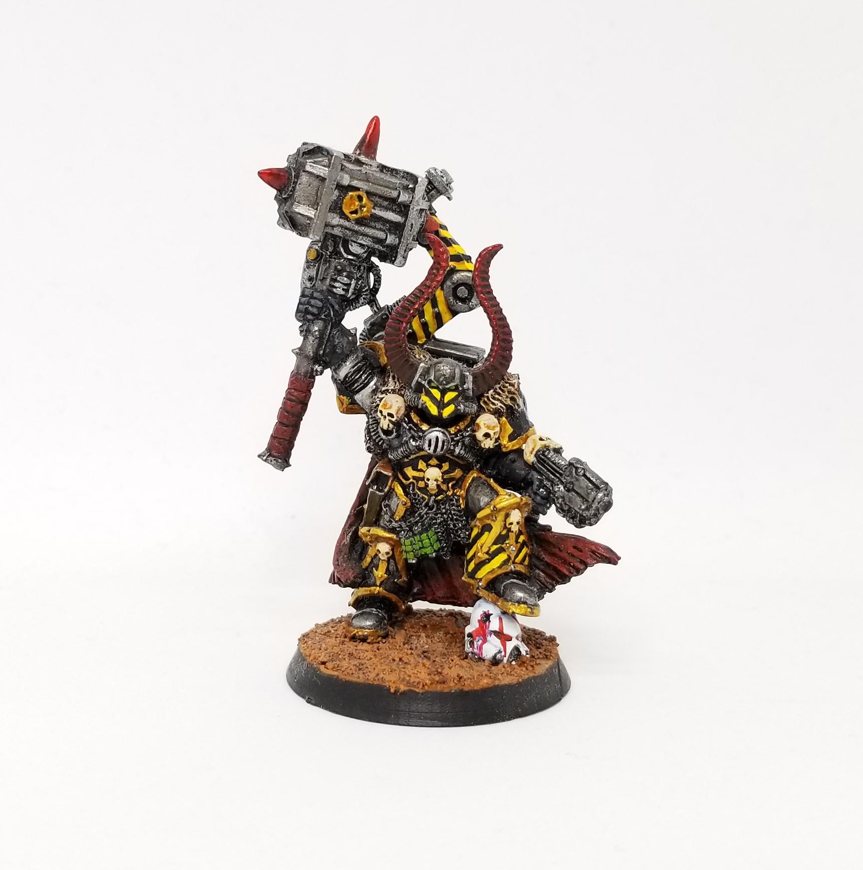 Ironically enough, Markos was illegal in WYSIWYG terms for years; while Iron Warriors characters could take Servo Arms in 3rd and 4th editions to get an extra free Power Fist attack and repair vehicles, Thunder Hammers have been off-limits to Chaos Space Marines until the release of Blackstone Fortress two years ago, which gave us Obsidius Mallex with his dinky little thunder hammer. Markos' relic Thunder Hammer,
