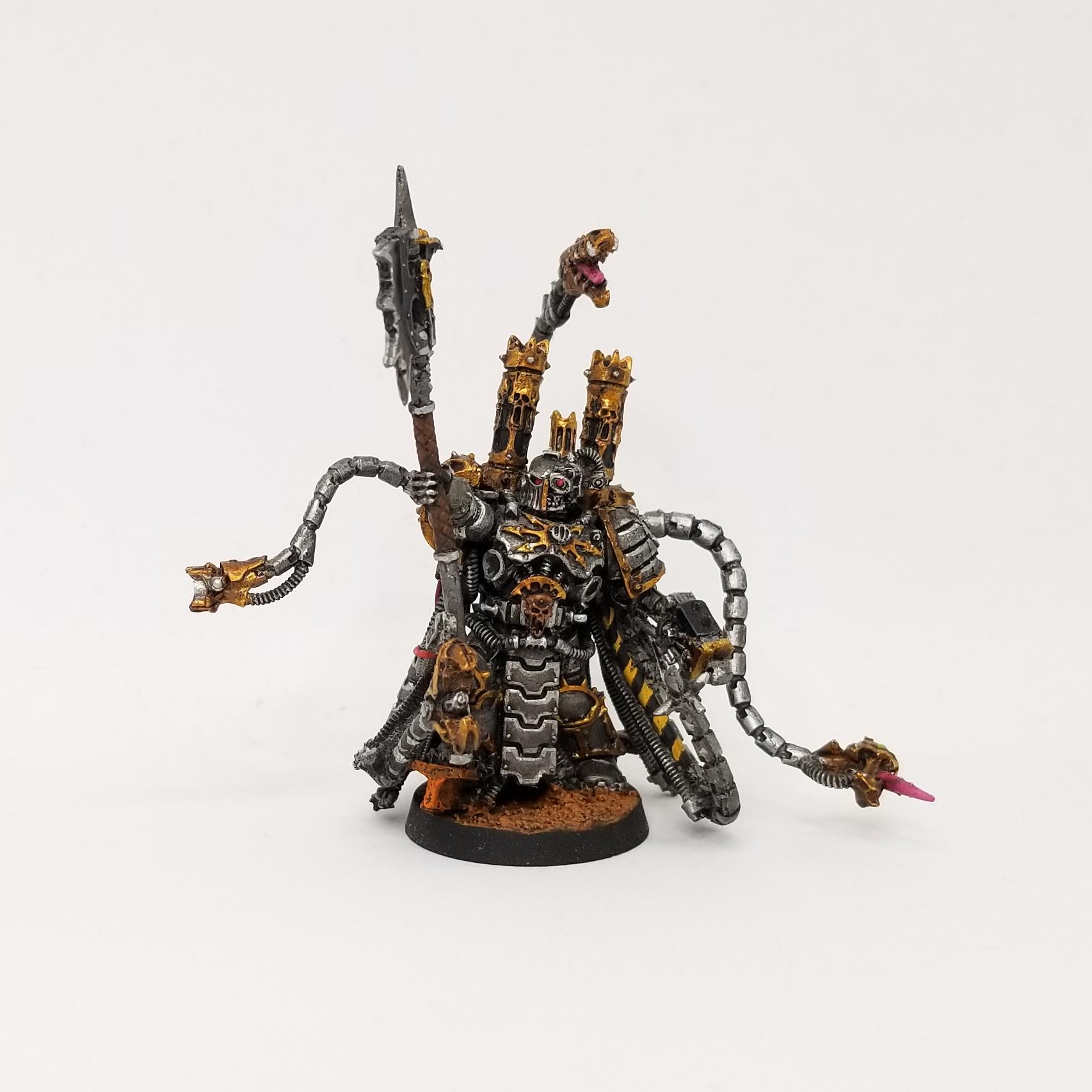 In a similar vein to Markos, the warband's sorcerer, Dammekos, also has a servo arm that now serves little purpose. I sometimes use this guy as a Waprsmith when I need a second or my Warpsmith is indisposed. Most of the time he's just a sorcerer though, casting Prescience on key units when they're preparing to fire.