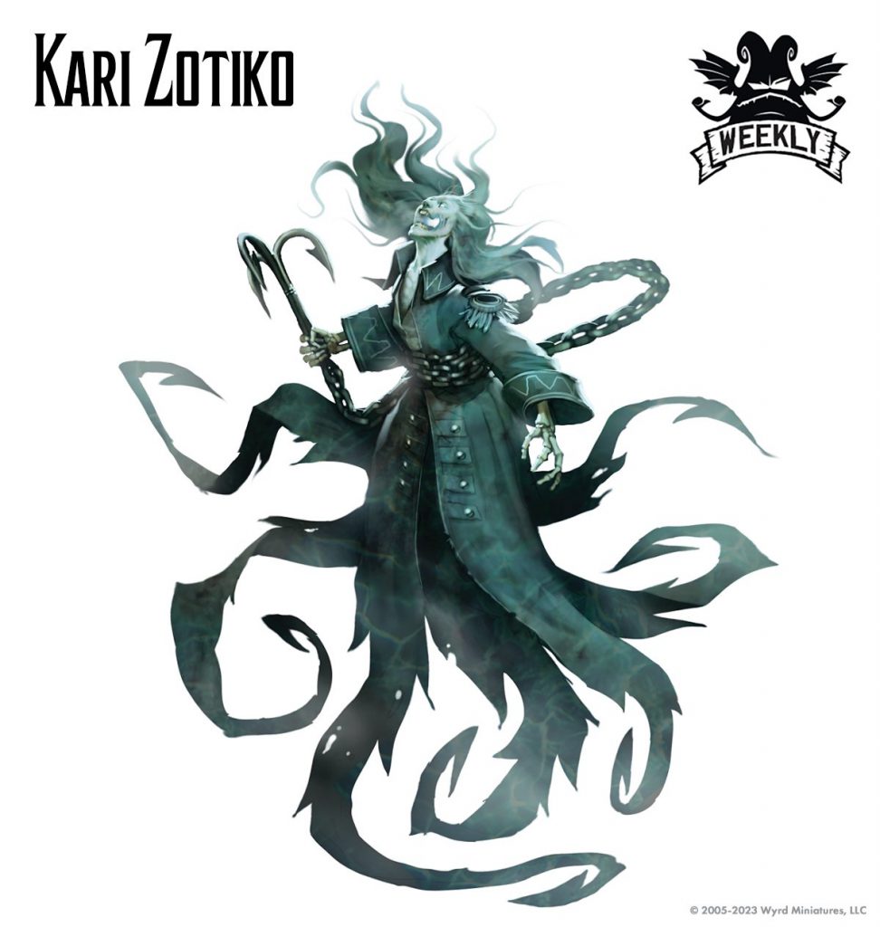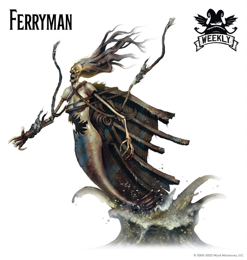 That's not quite everything. We've seen two more previews that, to me, strike me as candidates for Gigantic Ashes of Malifaux: the Ferryman and Kari Zotiko.