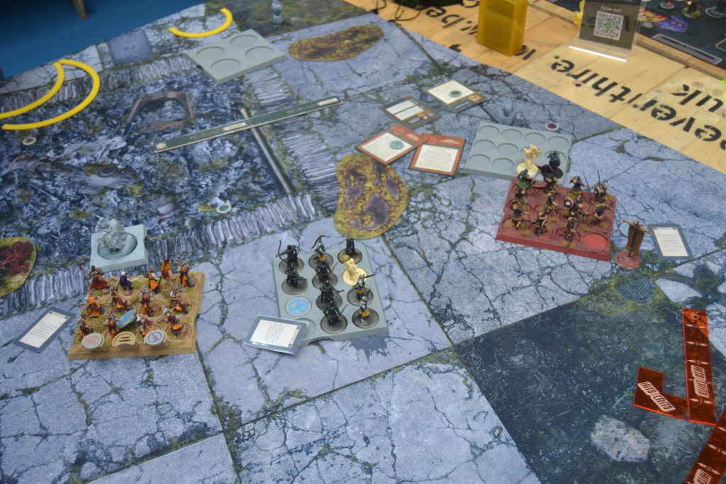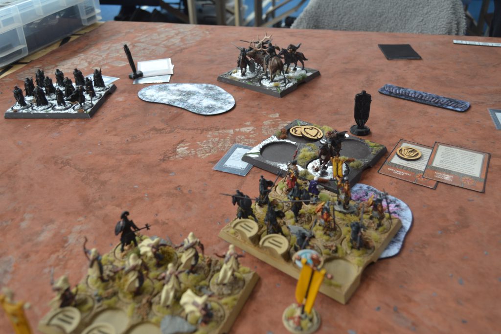 Coming to the end of Round 5 it was 2-3 to myself, Ray could play the card to score a point and become first player which would result in either healing Eldon or using him to try and take out Oberyn. If he succeeded in surviving or delaying Oberyn it could be game. So I took a position on the board which due to the cards scored Ray a point tying the game. This meant I was going first and could enact my plan. If Ray foresaw this then he could have taken a zone on the board to increase my lead giving him an advantage in the next Round. Oberyn killed Eldon from the Sword Zone, surged forward out of charge range, and then marched onto the objective. Skyreach Bowmen and Sand Skirmishes moved back out of range of charges and took their objectives giving me the lead. The game was super close and so intense that I forgot to take shots throughout the game. Just like with George, me and Ray are now 1-1 for games and we will need to settle the score in the next event.