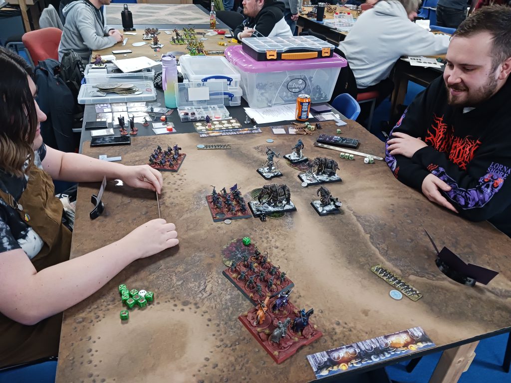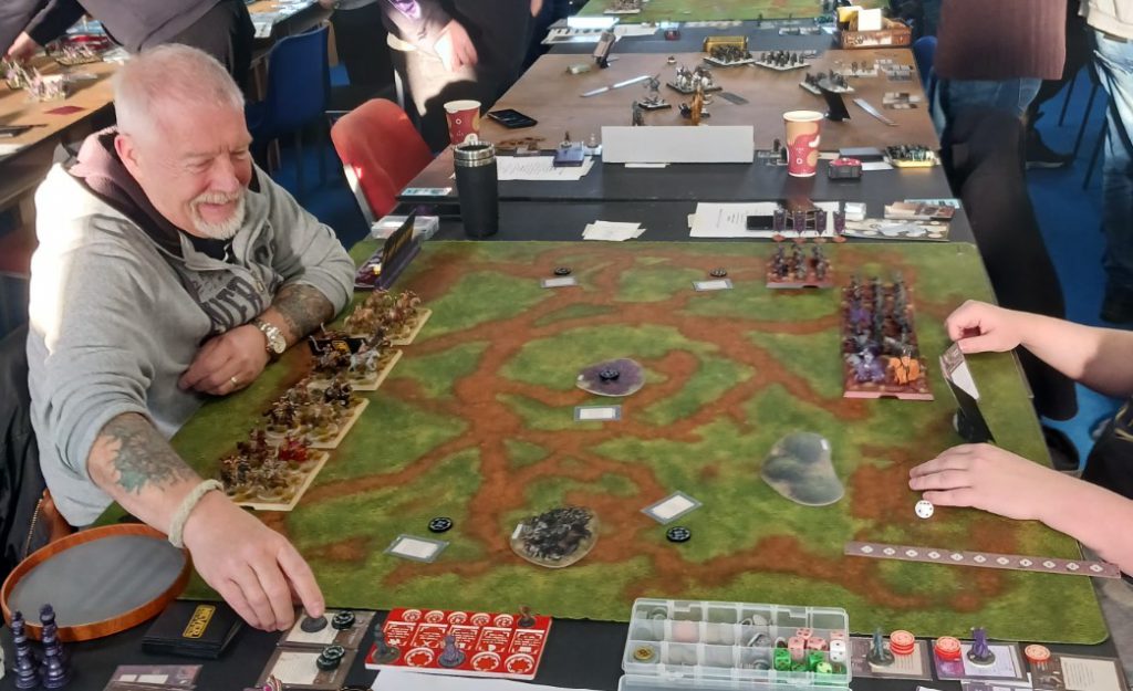 While CMON markets the game as a competitive miniatures game, and quite a lot of people play as such at other events, Ribble Rumble has a reputation for caring more about a friendly, fun game than winning at all costs or what your ranking will be, so a themed, sporting list build is be encouraged. This does not mean people showed up with themed lists as there were people with strong lists taking part in the event.