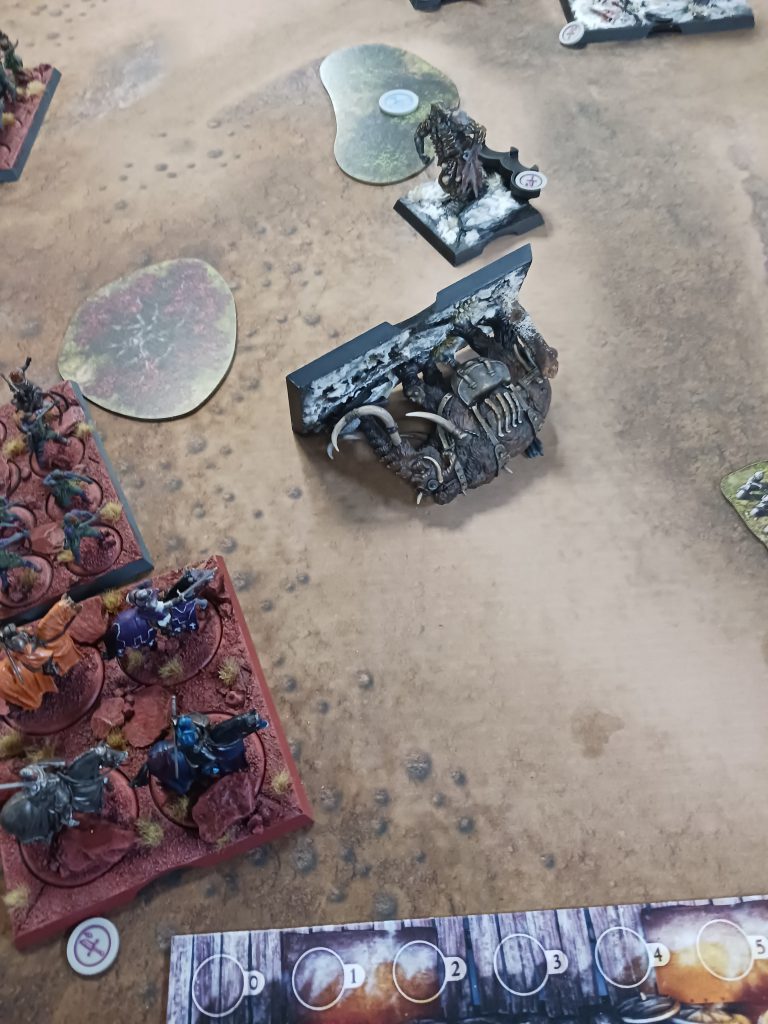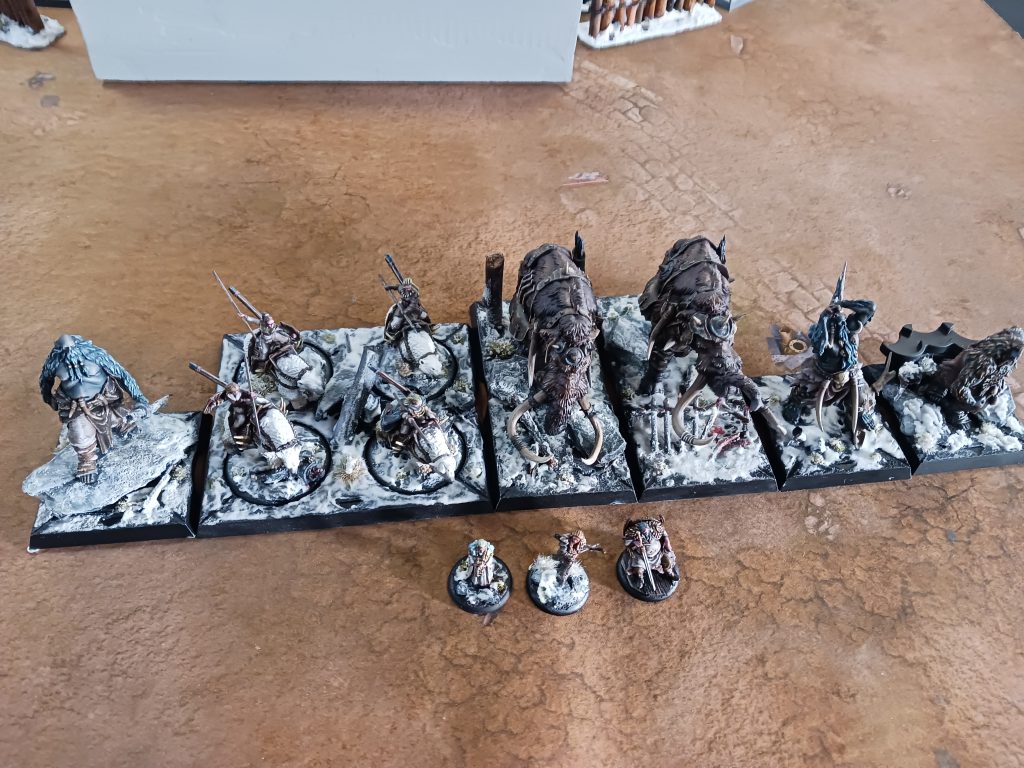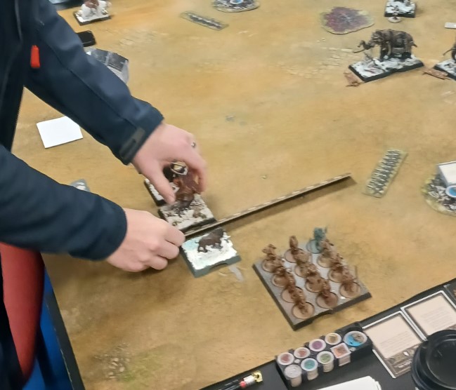 What happened was a series of bad moves from both mine and Nathan’s side. Shot Mag with the Archers since I had all the bonuses, I was hoping to take him down to one Wound, then pass the morale on the Glory Seeker doing a final wound. This worked but Mag killed the Unit before dying. He then moved the mammoth with Val and shot the Archers with Craster but they lived on two wounds.