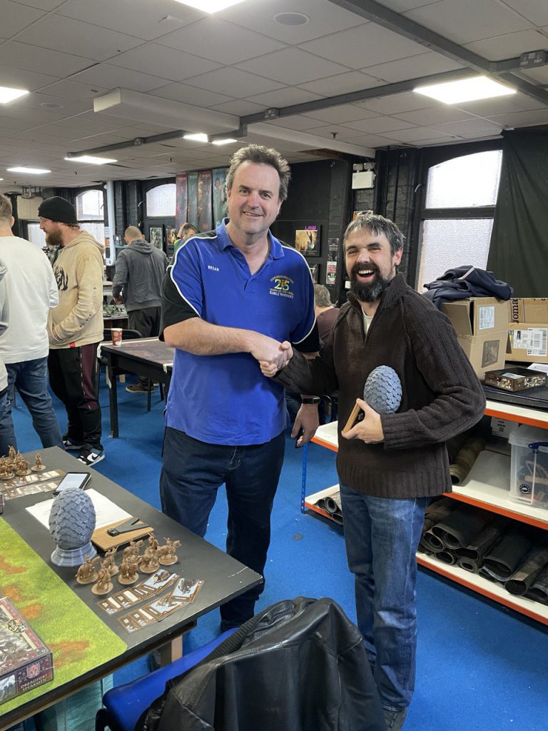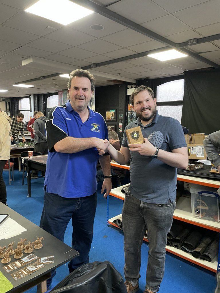 The event cost £40 for 5 games over two days and lunch for each day too. Meeting several new people and playing games against players I have never played against was a treat. The atmosphere was very relaxed and not as intense as some of the other events I have been to. It helps that there is a bar to fill you with beer to go alongside your games.