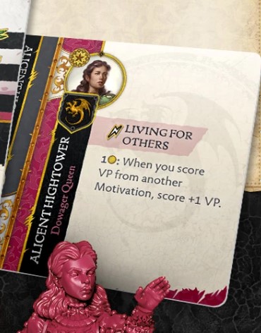 Motivation Design - Wow, a Motivation that is strong and also works to amplify Aegon’s Motivation. You bring both and when you score Aegon’s you then score Alicent’s; the only problem is that it is now 2 Gold for 2VPs which is again, very low. It is probably better to use Alicent’s Motivation instead of Aegon’s due to how less limiting it is, but it can only be used in line with another Motivation, and its far better to do so with Otto Hightower.