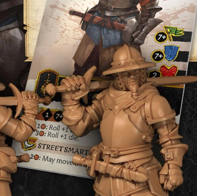 Rules Design – Similar to the Gold Cloak, the Flea Bottom Sellsword is good at everything but master at nothing. The same stats, other than less dice unless you have the Copper to spend, the Sellsword doesn’t have the potential of being debuffed and instead can remove some movement restrictions with the Street Smarts ability. Whilst I am unsure if I would be spending Copper on any of the abilities, you need some Soldiers to bulk up your force, especially to block engagement to your more vulnerable characters.