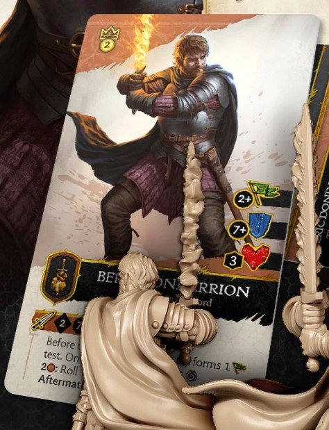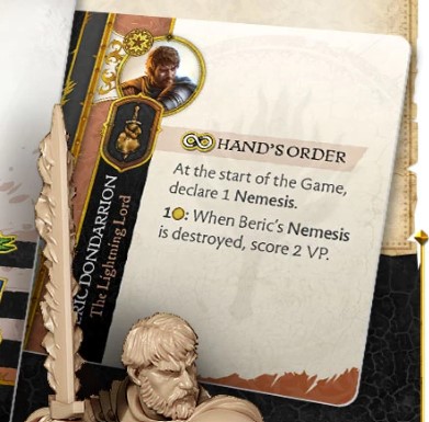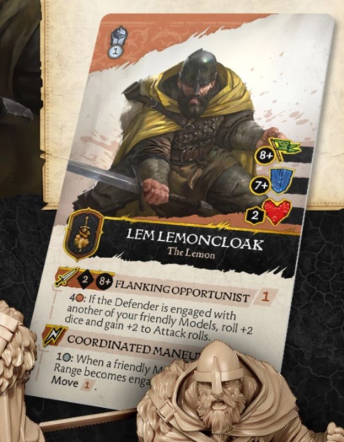 Following this is the incredible base statistics of Beric with the best Morale Stat in the game at 2+ which does synergise with his Melee Ability which seems to have him take a Will check to dish out a Shaken Token. 3 Wounds is not too bad and is needed with the 7+ Armour Save, he may be one of the more fragile models, but this usually balances out with the damage output, alas we cannot see the details of this at this. However, we can see there is an Aftermath ability and seems to roll something more for the attack with some copper. So, he could be a beast in combat.