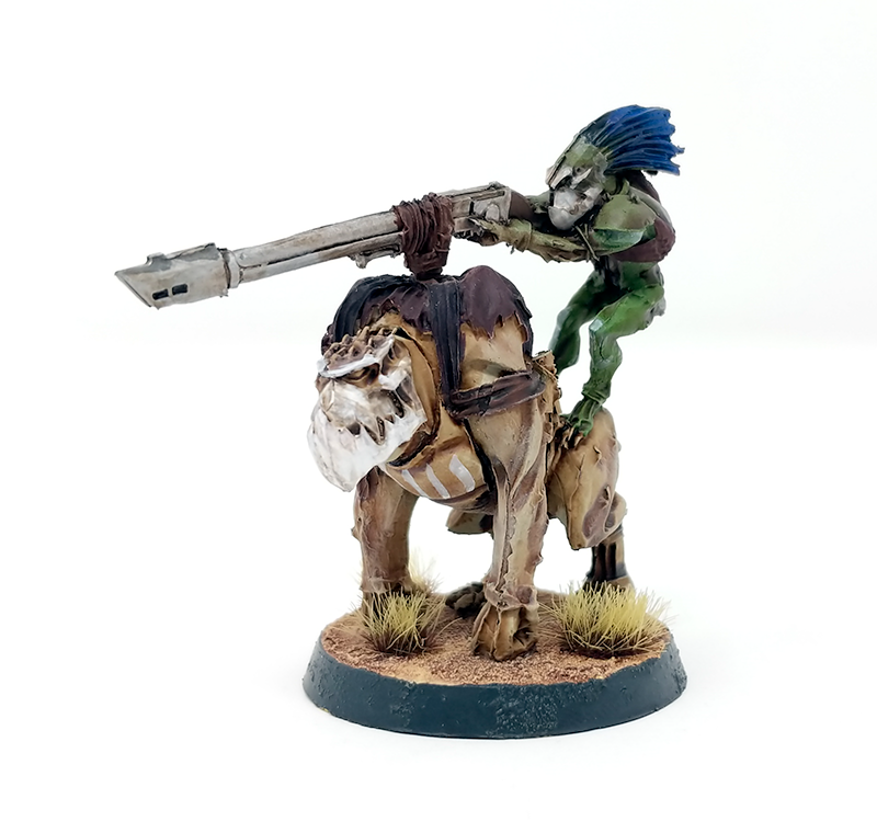 Your standard operative, with a Kroot Rifle and blades. You’re going to be bringing at least 7 of these guys, and one is going to be your leader, who comes with an extra wound and +1 to hit over the rest of the team. Armed with basically a boltgun, and roughly equal to an unarmed Space Marine in combat, these are a decent step up from a standard Guardsman considering you could potentially take 13 of them versus the 14 operatives generally available to other horde teams.