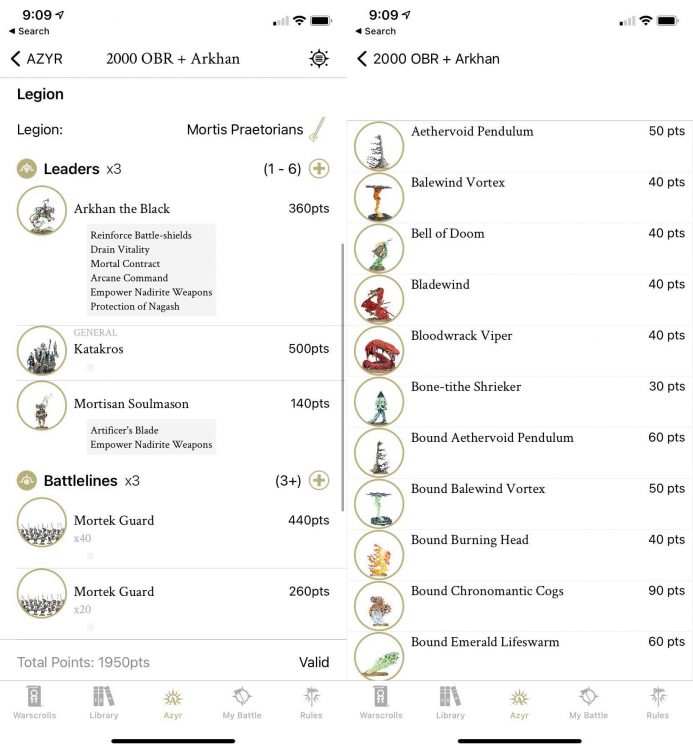 Azyr is GW’s mobile app and while it’s the best single source for Age of Sigmar rules (it contains all the warscrolls in super searchable format) it isn’t necessarily as good in its list building abilities as Warscroll Builder, often updated weeks later if at all. It’s a great little mobile app for building Age of Sigmar lists on the loo at an absurdly low rate (currently about ⅕ the price of the 40k app), but given how long it takes to be updated it’s often a miss; you just can’t trust it has the most up to date rules in here.