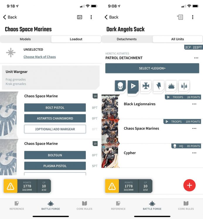 Battleforge is Games Workshop’s subscription-based flagship list builder for 40k, but sadly it's a bit of a leaky one. It’s often very slowly updated, clunky, and pretty dang poorly formatted for user input; it’s not nearly as intuitive to use as almost any other list building tool. We did a review of Battleforge when it first dropped, and while I’d argue that Games Workshop has substantially improved its app since launch, there are still too many problems to recommend it whole-heartedly.