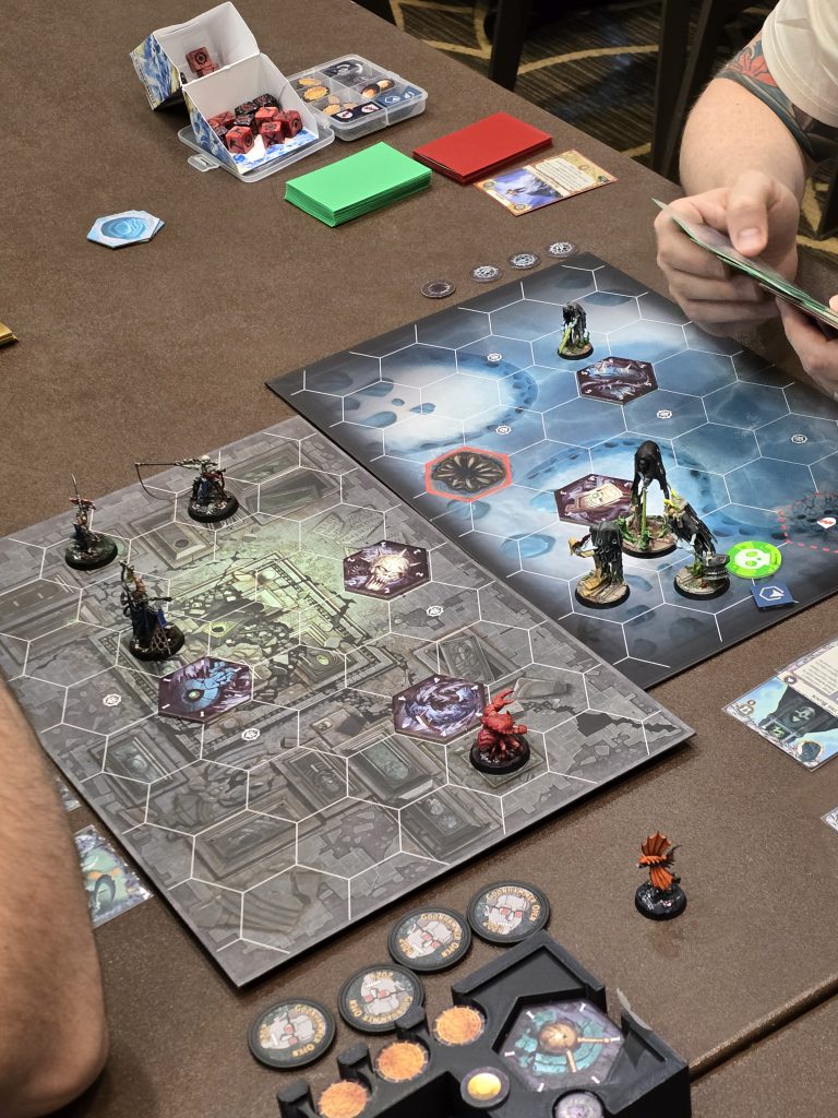 did think to bring extra dice and boards, just in case they were needed. However, I forgot to bring a set of objective tokens which did become relevant during the second round. Fortunately, Underworlds players continue to be the coolest and another player stepped up to loan them out.