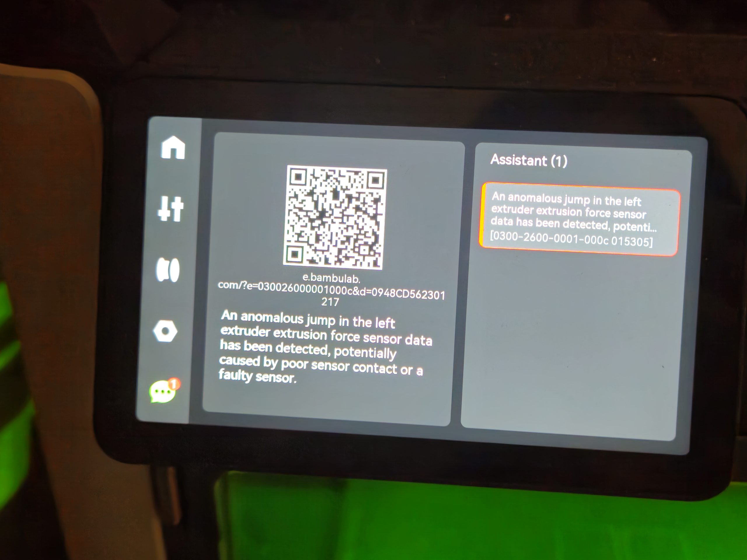All known faults identified by the printer have a corresponding error code and QR code that goes to Bambu Lab's wiki to minimize the guesswork of troubleshooting.