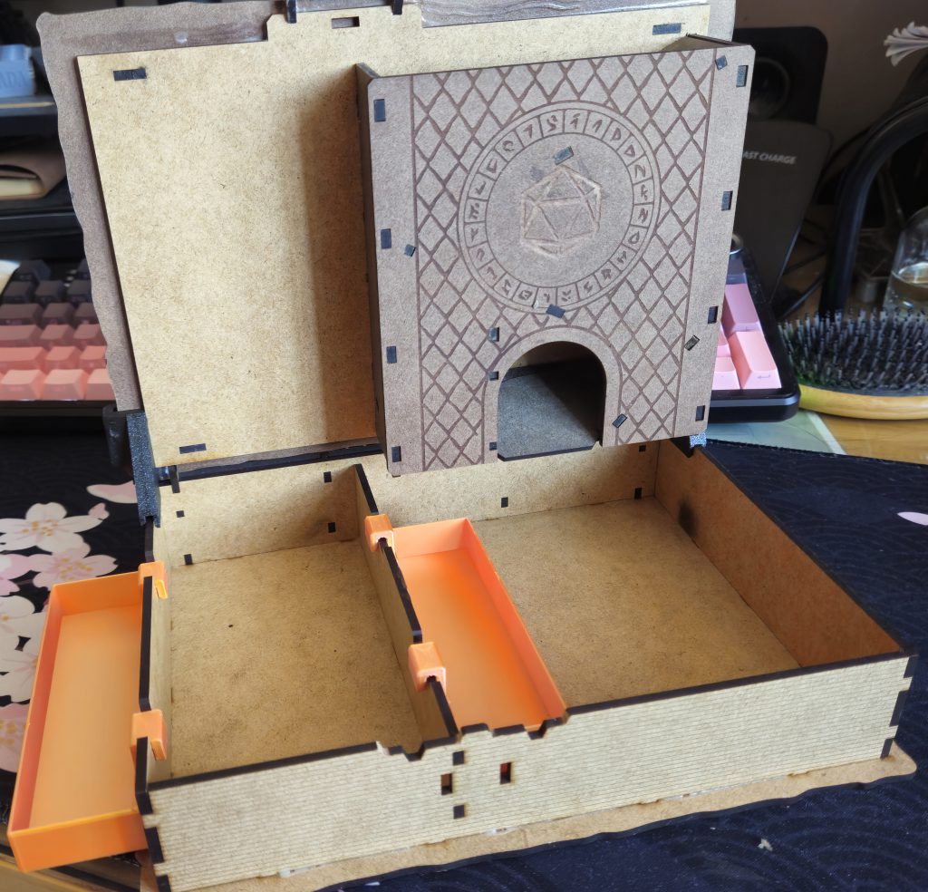 The H2D opens the way for projects that combine 3D printing with laser cutting, such as this DnD player kit.