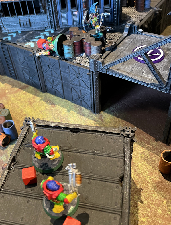 DREW: Over on our side of the store we ended up with Takeover. It’s a perfectly fine mission, if a little dull. One side is the attacker, one is the defender, and the defender lays down three landmarks which the attacker has to control in order to win. If that sounds a little like 40k laid out Necromunda-style to you, that’s because in a lot of ways it is. Honestly a Necro player who’s never played 40k before could use this as a half-decent entry point because it teaches you the absolutely imperative lesson “just play the goddamn objective already.”