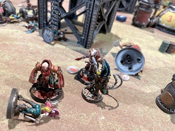 CHRIS: Dang. And you know 100% if you had not finished his model he would have come up on the first draw. Sorry to see him go, but not sorry to not have to face his boltgun again.