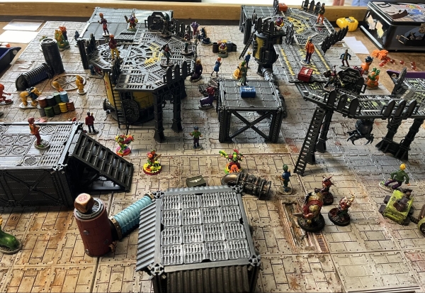CHRIS: The objective of the scenario was to keep the Humpa Dumpas from dragging away the paying customers. If only one gang still had fighters on the board or if there were no more Hivers left on the board or if there were no more Humpa Dumpas on the board the scenario would end. Winner was the one with the highest Humpa Dumpa Kill Count.