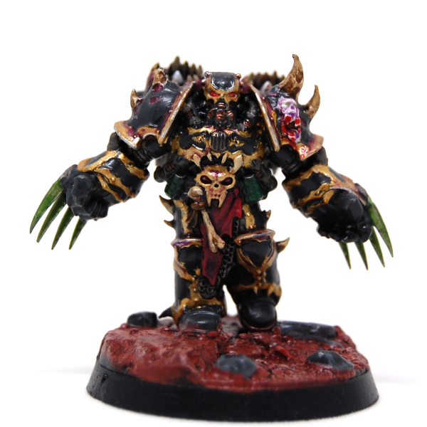 Valac Oathbreaker - Chaos Lord: Black-clad Brute, jump pack, 2 lightning claws, Mark of Khorne, Talisman of Burning Blood (PL 7, 2 Crusade points)