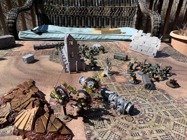 DREW: Again, I won’t go play by play because aside from one thing you can pretty near write this one out in your own heads. As predicted, this match turned into a great big mess in the middle of the table as my forces rushed up to capture objectives and threw themselves into the meatgrinder.