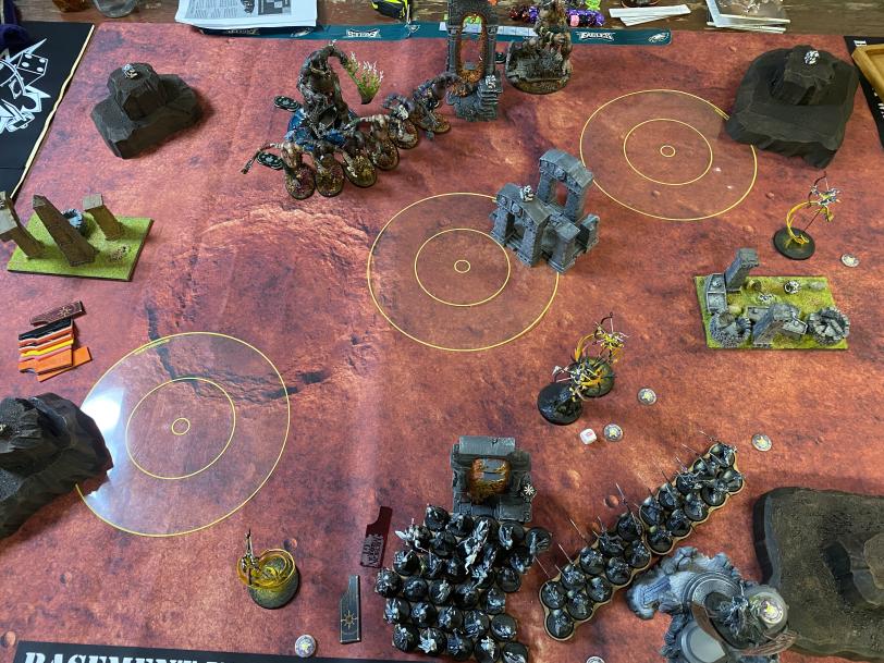 This game was gonna be a testament to my ability to deal attrition damage. His whole army ignores rend 1-3 depending on which buffs are up, and where. Add in the 4+ Ward, and at least 2 wounds a piece and it is a slog.