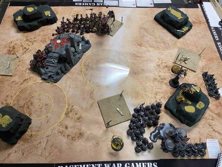 Summer Slaughter is a 98 person Major GT in Pottstown, Pennsylvania. Held by the Basement Wargamers Club about an hour outside of Philadelphia, this 5 round tournament was scored based on W/L with the tie breaker being in-game victory points. Being the the largest US-based Sigmar Since 2020 LVO, everyone had their forehead temp scanned, hand sanitizer everywhere and new masks in everyone's swag bag, something I hope to see as a recurring theme as events start ramping up again.