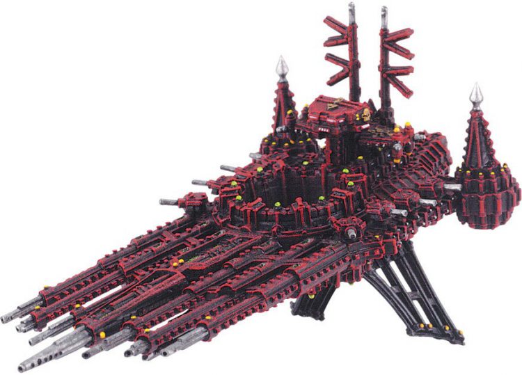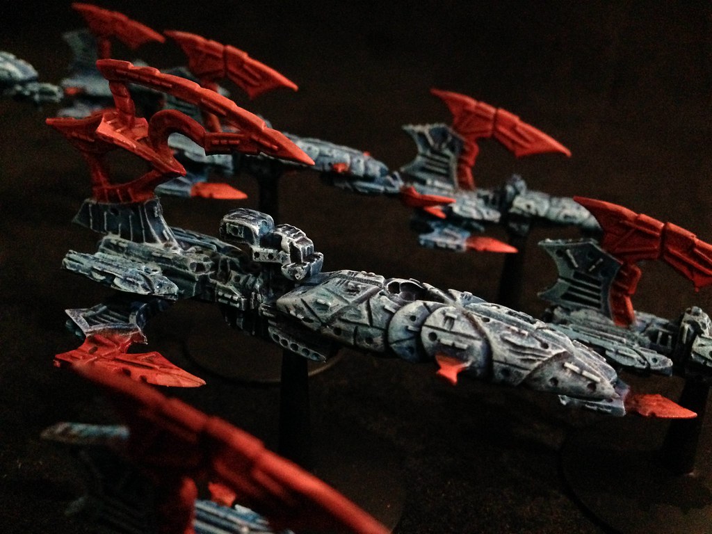 The single escort in the Dark Eldar roster is a customizable platform that for 50 points comes equipped with a base set of weapon batteries and can then be supplemented by one of: an increased battery putting them on par with an Eldar Aconite (but cheaper), a Phantom lance, a dual torpedo tube, or an Impaler module. Additionally, for another 20 points, the escort can be equipped with Mimic engines. While the roster entries are extremely limited, the customization options for the class give the Dark Eldar surprising flexibility in fleet construction. The 40cm move is amongst the fastest standard moves in the game outside of the Necron line....