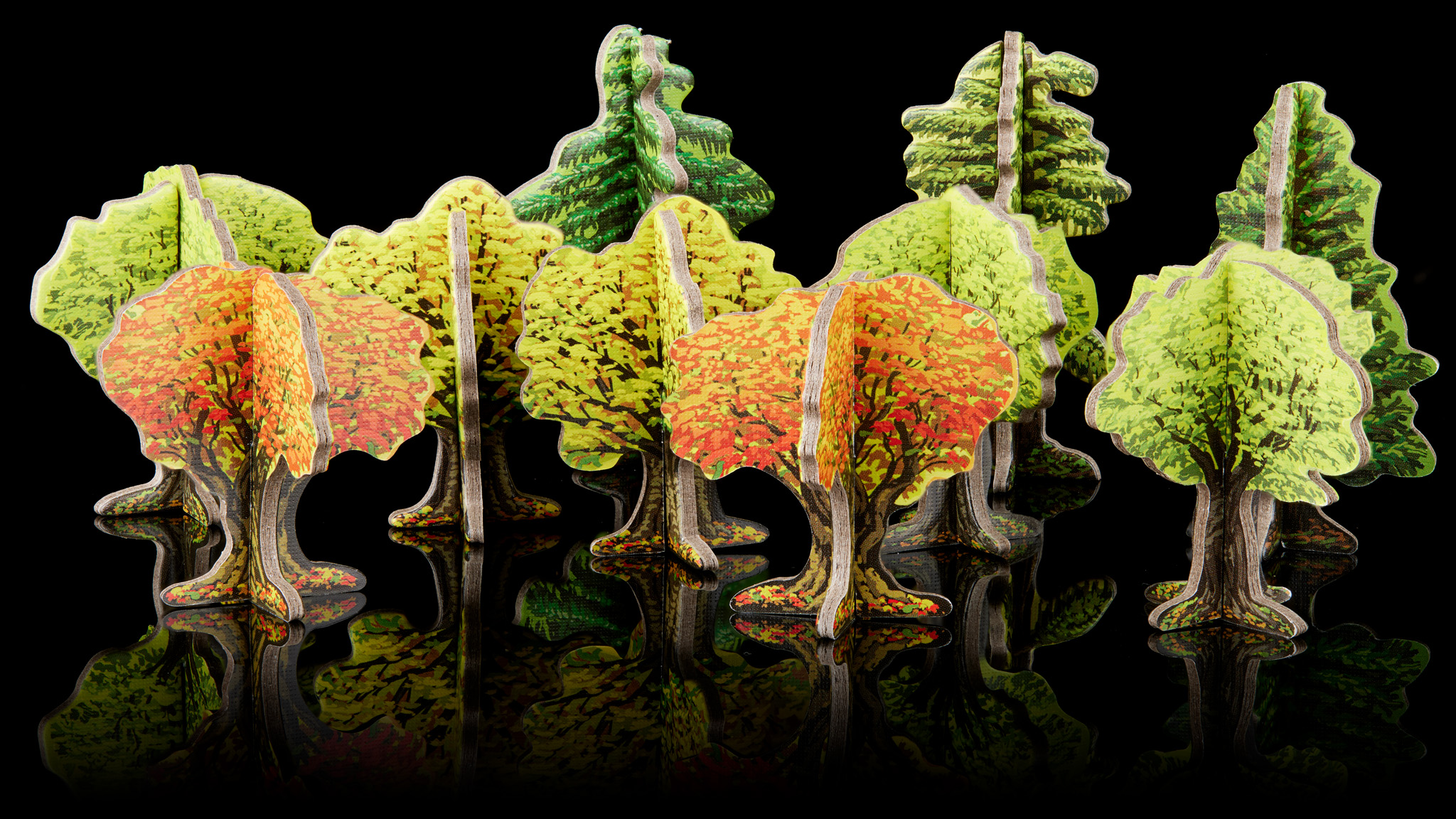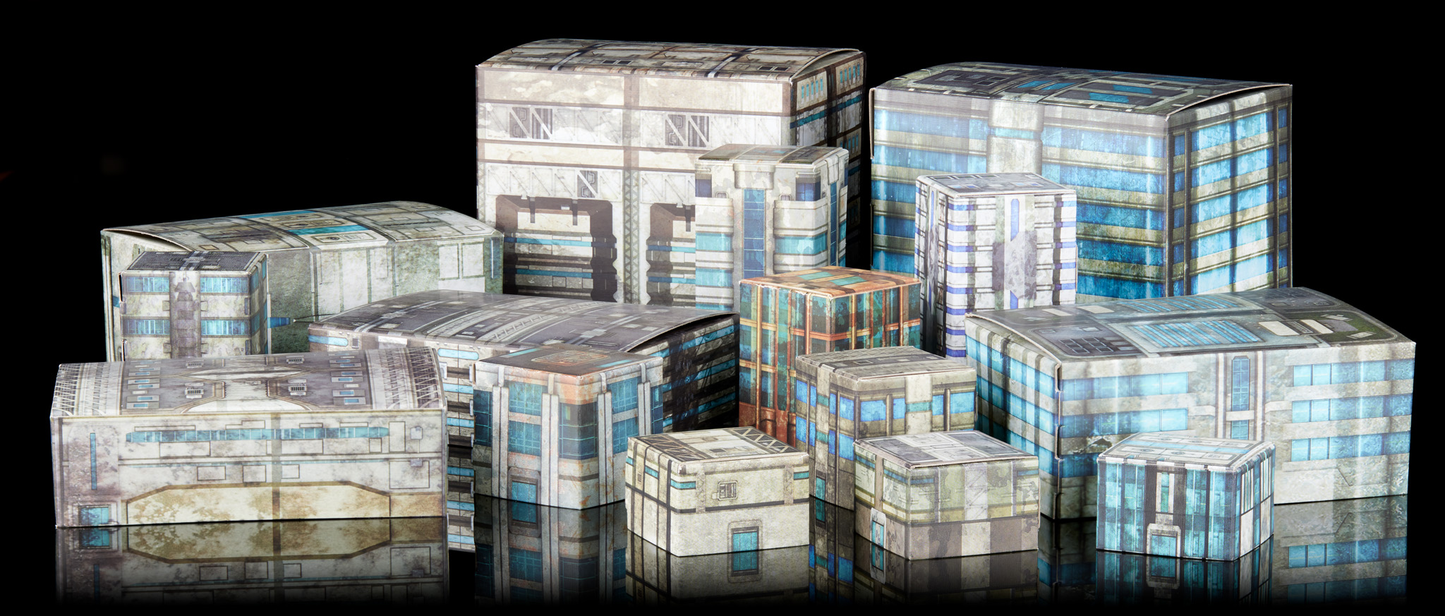 Also included in the box is enough terrain for an entire battlefield. There are 15 fold-up buildings with two different footprints and a variety of different heights, and 10 punch-out card trees. While not tremendously fancy, the terrain looks great and is enough to fill out the recommended 16 terrain pieces the rules call for when setting up a battlefield (a single terrain piece is two of the smaller buildings, one large building, two single trees, or a forest created from between two and four trees to define an area).