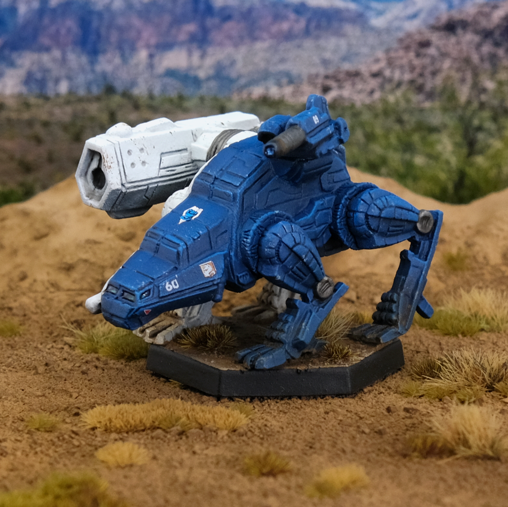 Quads! I love ‘em, but the ones available to date (Scorpion and Goliath) aren’t really my favorites. Due to the way quad ‘Mechs work, they tend to fall into one of two categories: snipers and skirmishers. Sniper quads love to use partial cover and effectively render half the hit chart irrelevant, while skirmishers use high ground speed with the unique “side step” only quads can do in order to maintain optimal positions. The Scorpion and Goliath both largely fall into the former category, but the Barghest wants to brawl. Almost all Barghest variants are excellent brawlers, typically packing an AC/20 or heavy Gauss rifle (the latter of which has its recoil penalties offset by the quad PSR bonus), and use the 5/8 move profile that most models have to bring it in close. The -4T is the most modern sculpt of the ‘Mech and packs an improved heavy Gauss and a turreted pair of lasers, giving it some weapons coverage in close quarters where most quads would be stymied by their inability to torso twist. Be advised that the Barghest is a fairly chunky boy and will have a little trouble fitting on a standard-sized base like most IWM quads, but it’s worth putting up with to have one of the best Lyran ‘Mechs in the game on tap.