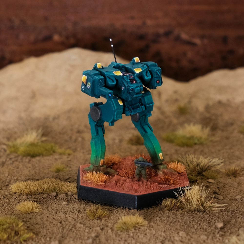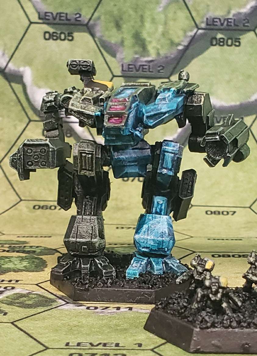 Speaking of pinning, this fat bastard is the most Lyran thing in my collection. It’s 100 tons of HGR meme, and it’s certainly built like it too. I initially waved off on buying the IWM model due to my attachment to the MW4 redesign, but this one slowly grew on me. Gameplay-wise, the Fafnir is a very simple concept: waddle up field, throw heavy Gauss slugs at anything that gets within 13 hexes of you, and pray your opponent didn’t bring battle armor. There’s also a standard Gauss variant, but that’s for quitters. As for the model itself, definitely pin or epoxy this one together - it’s simply too fat to risk it all on super glue. Unlike most BattleTech models, you may also want to subassemble it, as it’s sufficiently thick that painting mine fully assembled gave me a strained wrist for a week. The experience sucked, but hearing the audible thunk when I placed it on the table for the first time made it worth it.