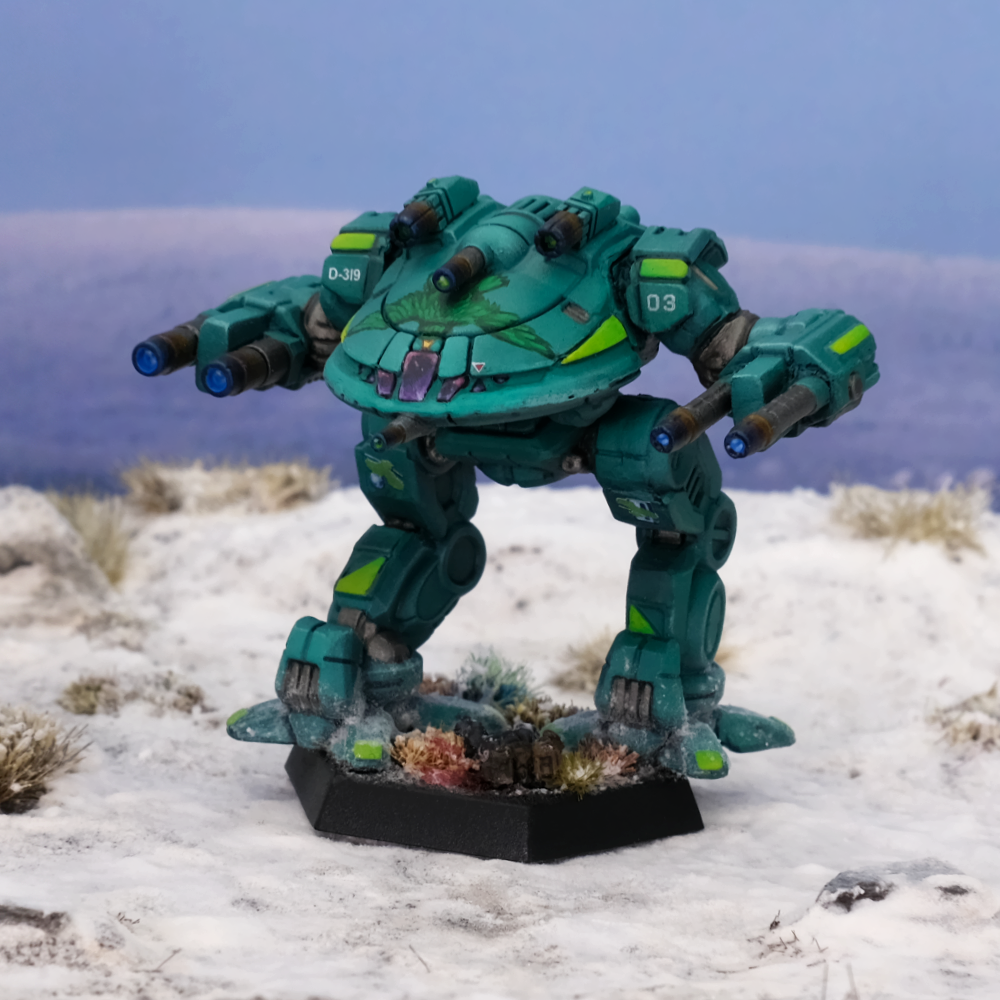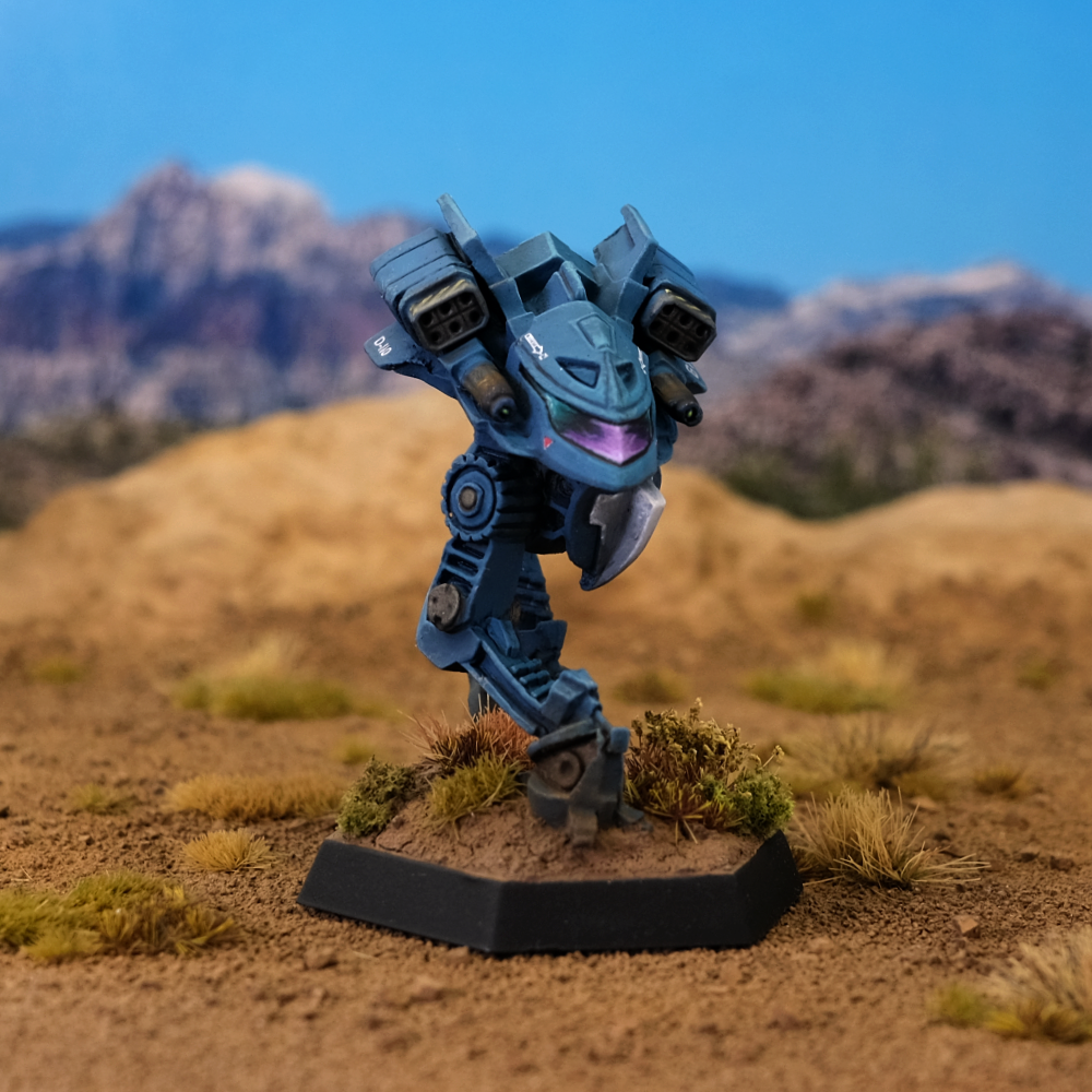 The Raptor II isn’t that good. It’s built around the Void Signature System, which kinda sucks, and the BattleMech Taser, which also kinda sucks. That’s fine, because it was in MechAssault 2 and represented the peak of mid-00’s design aesthetics in the series. The model itself is exceptionally charming, and the base -2X model has a pair of medium VSPs and moves 7/11(14) for under 900 BV, so it’s not all bad. There’s also a modernized resculpt of the RPT-5X, but the original design has a lot of charm and nostalgia for me, so that was the one I picked up. It’s fairly easy to assemble, and with some 3D printed SRM bits, I was able to easily convert it to the -3X model that’s much more widespread. My only complaint is it has a near-total lack of detail on the rear torso, which is just a flat surface with a hole, but I’m willing to put up with it to reminisce about the good parts of my teens whenever I pass by my display case.