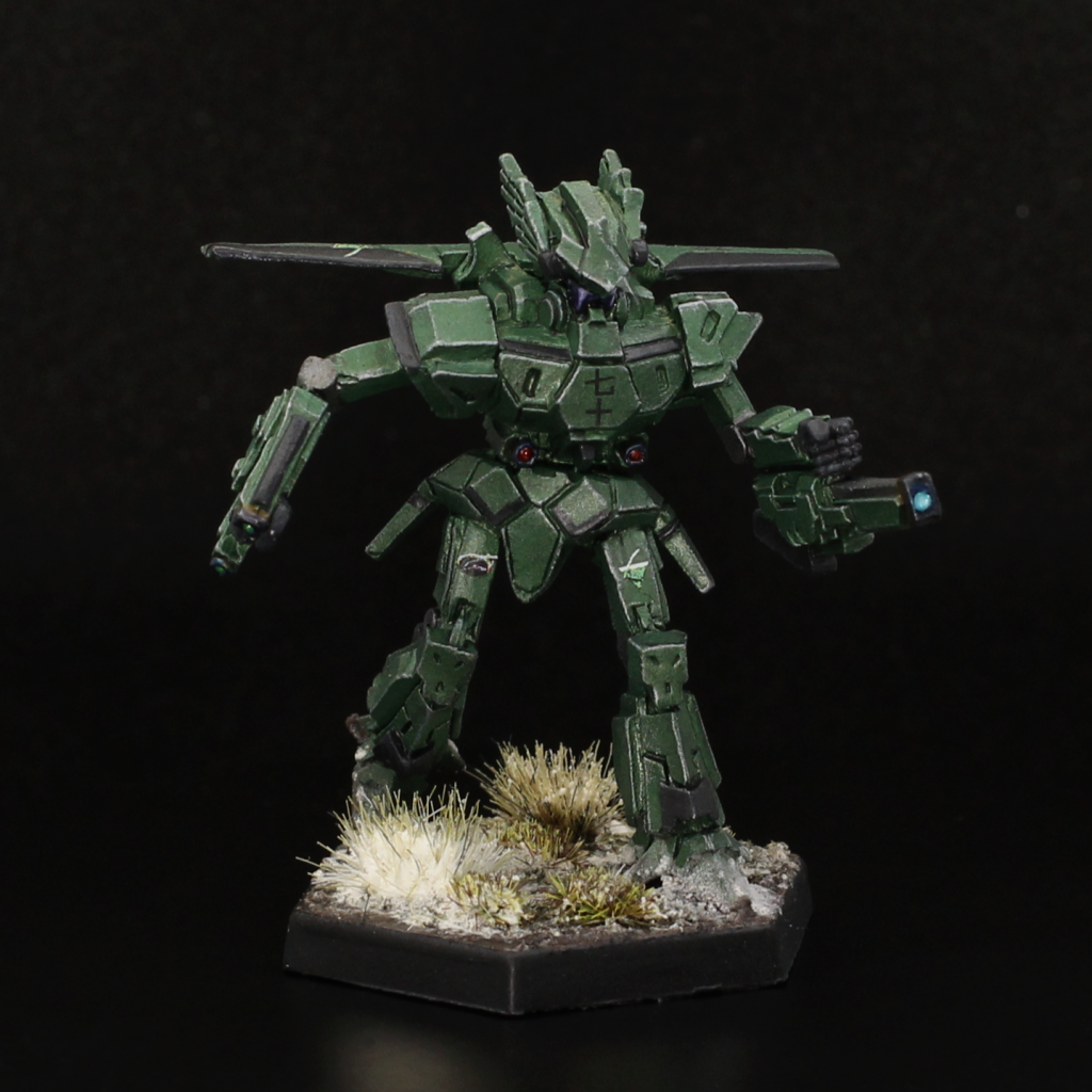 The Agrotera is basically what happens when you take a Phoenix Hawk and run it through the Gundam filter instead of the Macross one. It’s fast as hell, reasonably well-armored for a 50 tonner, and packing a bunch of energy weapons that all have some kind of gunnery improving tech involved. The model isn’t easily posed, unfortunately, but the default running pose it comes in isn’t too bad. The one minor issue you may run into during assembly is with the partial wing component, which has a very small point of contact on the rear of the center torso. I used epoxy to reinforce the connection point and strongly advise you to do so too, given how much the component itself protrudes from the model. There’s also a jumping version of the sculpt, if you’re into that sort of thing.