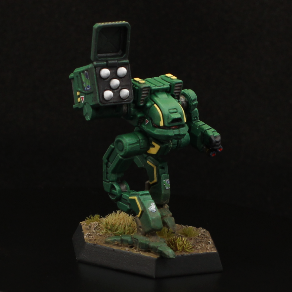 This is probably the oldest sculpt on this list, but damn it, the Hussar has aged like wine, and brings fantastic “I’m just a little guy” energy to the table. He needs it too, because he’s made of paper – somehow even moreso than the Fire Moth – and is best utilized poking people from long range with its lone ER large laser. Like the Raptor II, this model works best with a recessed hex as it comes with its own little mini platform that it’s meant to go onto. I strongly recommend using some alligator clips or similar as well to get the arms to stick, as well as drilling out and mounting the antennas on the rear of the turret (which isn’t actually a turret, somehow). I used 0.3mm beading wire from Beadalon for mine and it looks great.