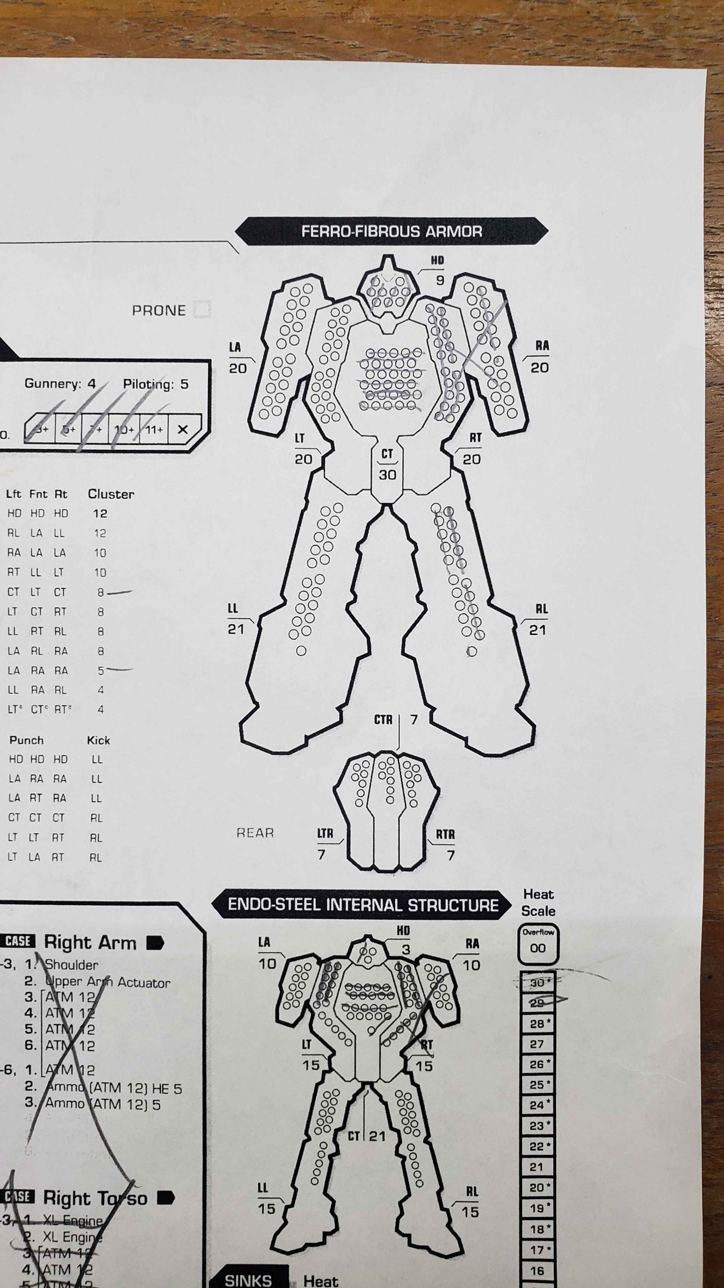 Peri has the sheets somewhere but when we did our last test game for this of the 6 or 7 'Mechs that died only one of them had any real damage on both sides and it was the one that just backed itself somewhere that things could not effectively get around it. Rules that encourage you to just wall pin instead of maneuver just from the knowledge that if you