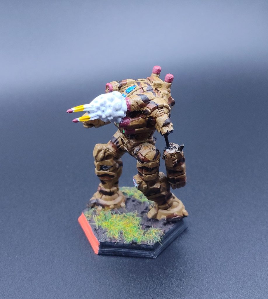 My Ostscout suffered a Series of Unfortunate Events before it was finally put out of its misery: It fell at the end of Round 2 shooting and fell on its head, knocking the pilot unconscious on snake eyes. She woke up at the end of the next round and tried to get back into the fight, but got knocked over again and destroyed its own right torso (not dying immediately, thanks to its Light Engine, but suffering). Then it got tagged in the head by the Vixen’s mighty three-damage punch and poor Sgt. Lena Dantalion, bless her heart, went unconscious again on the 5+ pilot damage check. She would never wake again.
