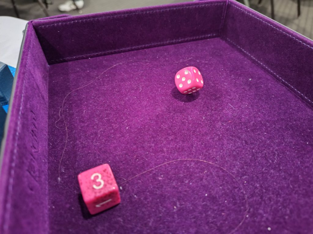 Also I had a die break the laws of physics. Credit: Lynn B.