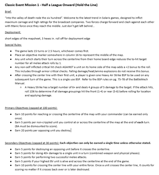 The rules for mission one, "Half a League Onward (Hold the Line)." Credit: Tweezer