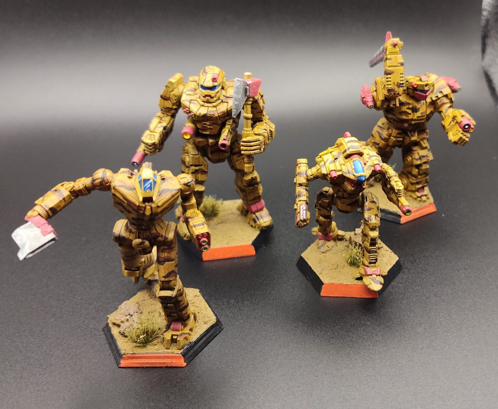I only made the commitment to attend SAV, at Liberty’s prodding, after the initial ticket allotment sold out and the field was expanded to 60 slots. That left only about ten days between my decision and the list-submission deadline! With the tight timeframe and the field being far too large for a truly competitive three-round tournament, I decided to entertain… rather sillier lists than I would normally play. Following a borderline fugue state in which I modified a CGL Banshee into a WYSIWYG 8S variant, plus Liberty pointing out the “armored everything” Grand Titan 13M to me, I ultimately settled on a listbuilding goal of fielding nothing but TSM mechs with melee weapons. The Banshee 8S is one of a handful of Lyran mechs that was supplied to the Principality of Regulus during the Dark Age to support Regulan efforts to stop Oriente’s reunification of the Free Worlds League, and that steered me towards the idea of fielding my melee mechs as a Dark Age Free Worlds League (Regulan Fiefs) list. My “Rowdiest Regulans” ended up being…