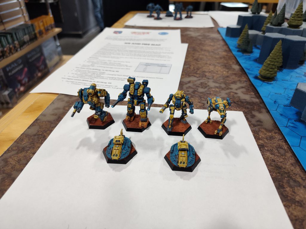 I was paired into one of our community’s youngest players, the son of WarZone ‘25’s winner, for this round. He’d brought a ComStar list tooled for objective play, able to boast an enormous amount of speed. He was running, as best I can recall, a Mercury 99, a Hermes 4S, an Omni Firestarter in the pulse-heavy B configuration, and the Shadow Hawk Ht, plus a Royal Black Knight and Highlander 732, all at 4/5.