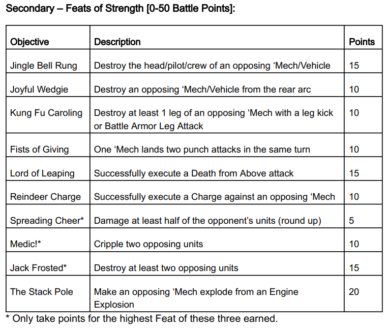 only way to win primary points on this mission, so maxing out on primary points would mean playing at least seven rounds of BattleTech. No damage to Santa carried over between rounds.