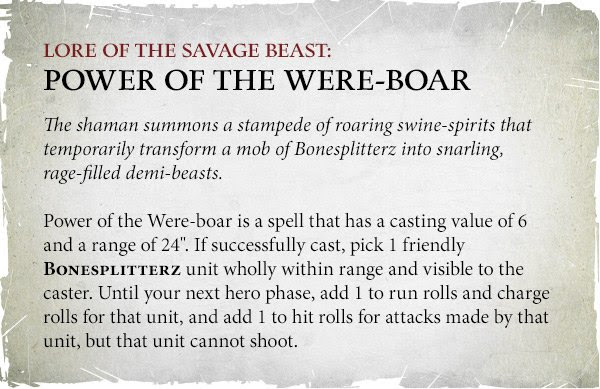 This was also notable for its dual utility on Big Stabbas who were a hard-hitting unit that could natively run and charge, gaining bonuses to everything they wanted to do from one single spell. So there’s another kicking then.