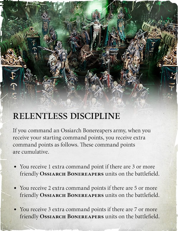 - Army Rules for the Ossiarch Bonereapers, including the massively revamped Relentless Discipline.
