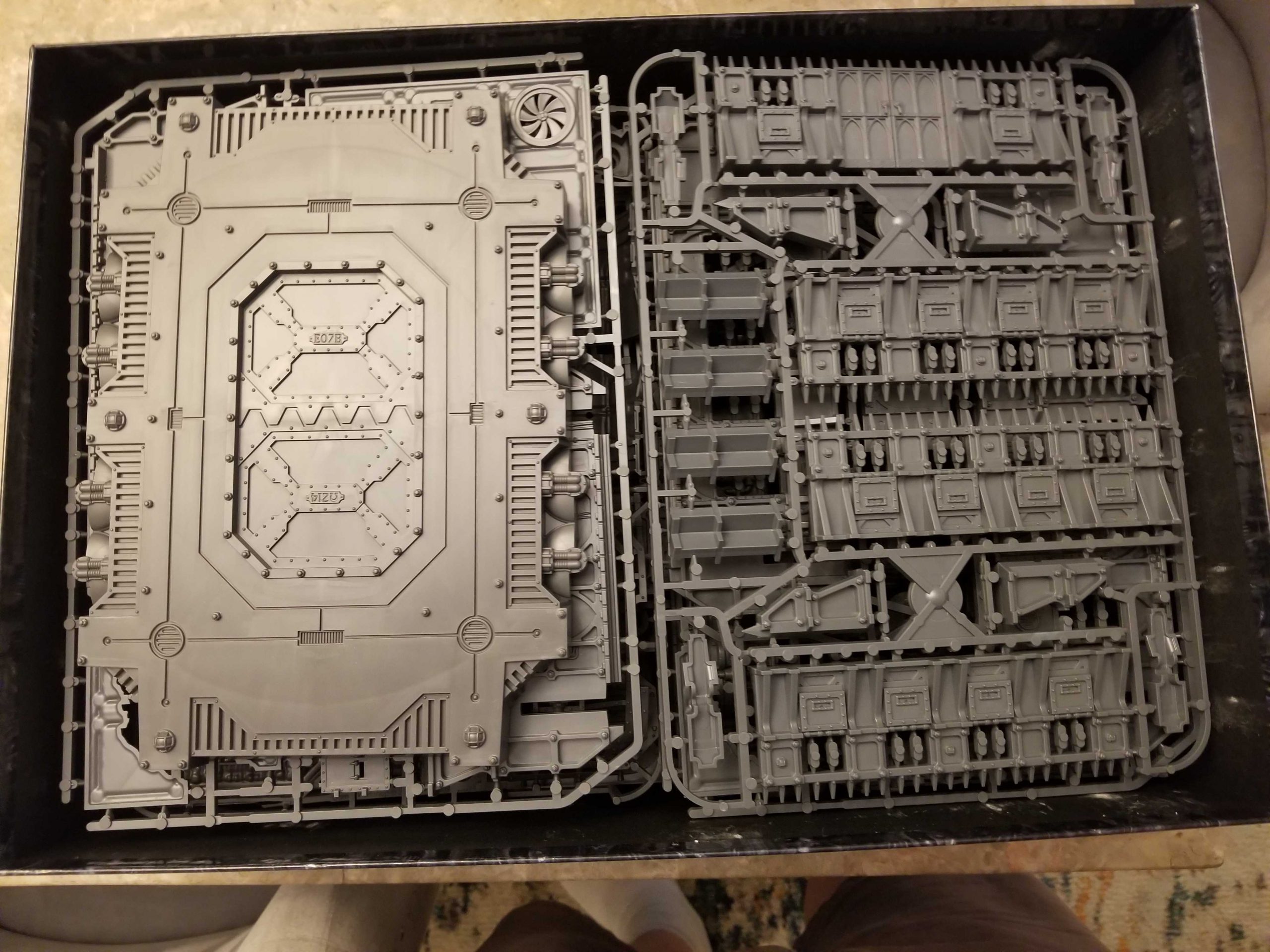 Fowler: I only went in on the landing pad, and I am pleasantly surprised with how beefy it is. It’s got one loose big piece and a big chunky sprue for the sides and staircase. Lots of similar design elements from Sector Mechanicus and Zone Mortalis terrain here.