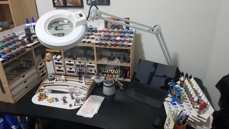 Hobby Station is trundling along and in theory keeps my desk tidy. I’m almost out of space on the top for GW style paint pots but I have plenty of room on the Dropper bottle rack. I’m looking at transferring some of the GW pots to dropper bottles as I’ve recently lost my Grey Seer and Wraithbone pots to the poor lid seal design. You will hear some great stories of GW’s customer service, this wasn’t one of them. That said, the lids are perfectly fine for the Contrast paints so no worries there.